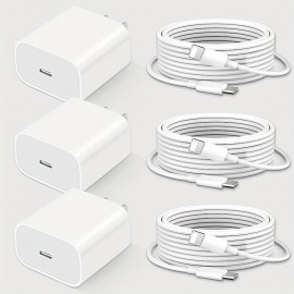 Suitable For Iphone Fast Charger 20w+1pc Type-C 39.37inch Set Suitable For Apple Charging Cable Mobile Power Adapter Compatible With Iphone 14 13 12 11 Pro Max XR XS X, IPad